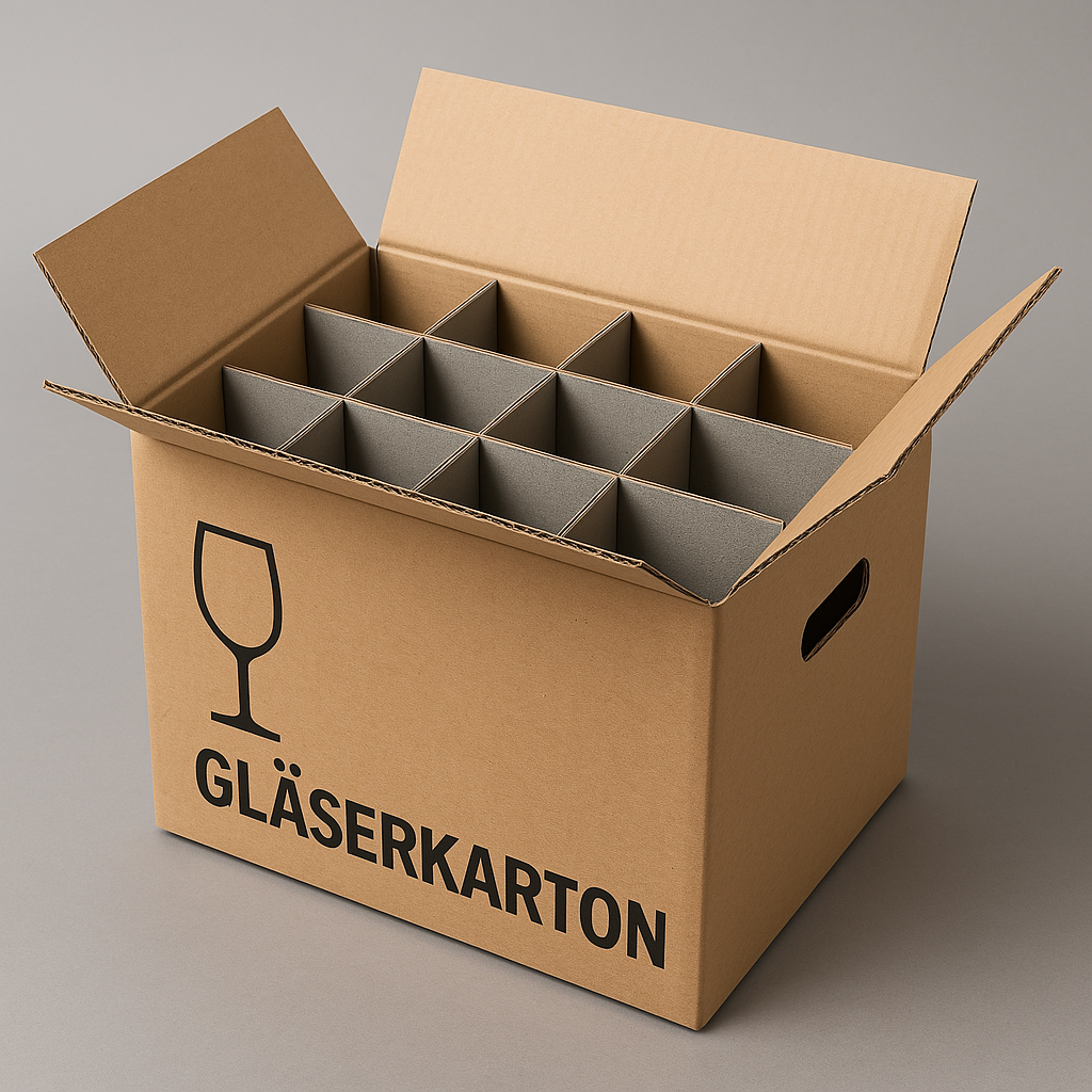 Gläserkarton mit Einsatz, 590 x 318 x 328 mm, Innenmaß.
